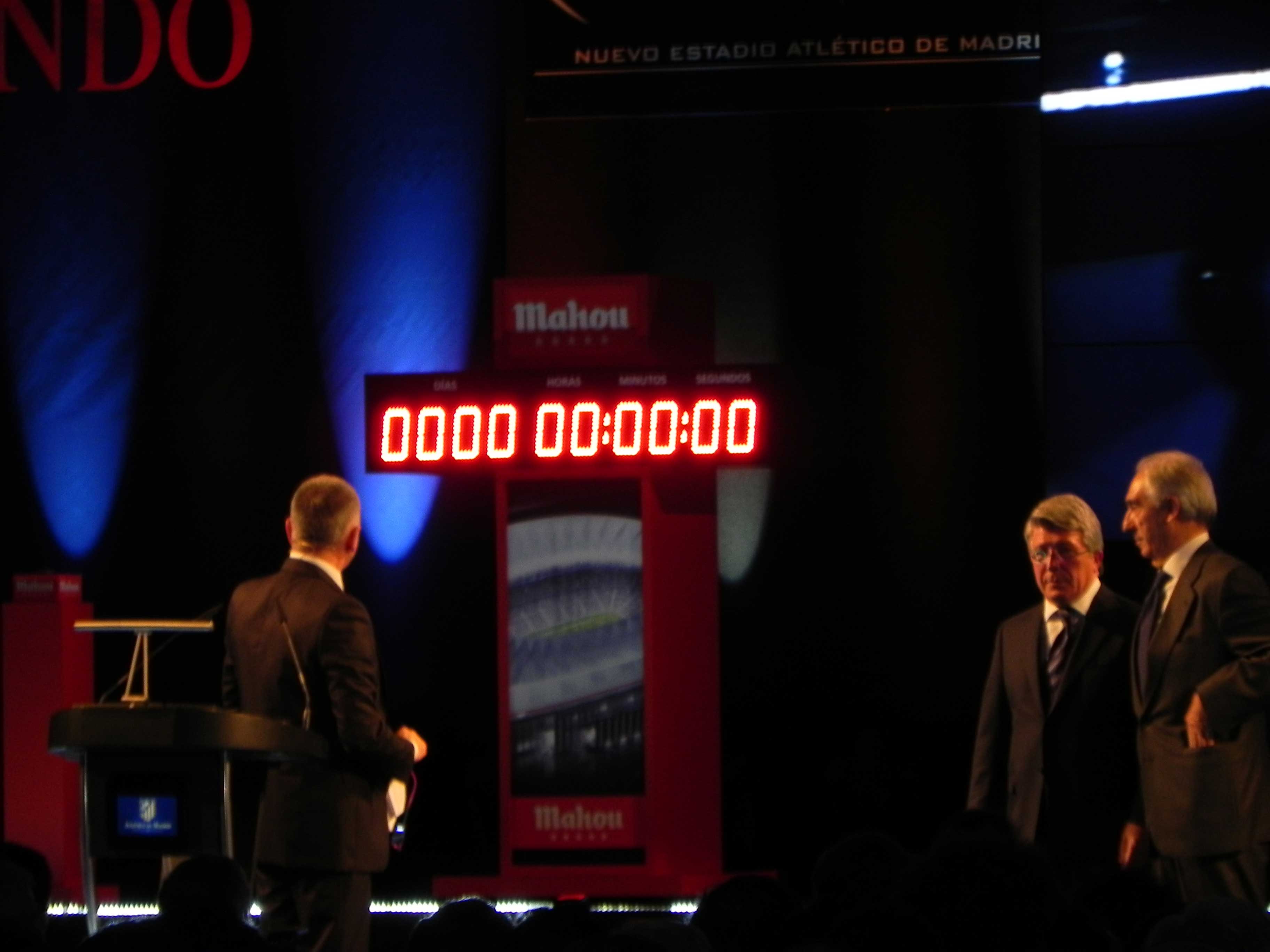 El acto de pistoletazo quedó refrendado con una simbólica puesta en marcha de un reloj que cuente el tiempo que pase hasta la llegada del nuevo estadio. Un gesto extraño pues un contador hacia delante no tiene objetivo específico. En cualquier caso al final de este artículo pueden ver la utilidad y probable destino del susodicho reloj. Atendió a los medios don Enrique Cerezo aunque con su habitual sorna: