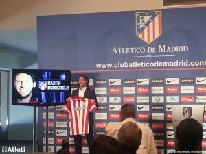 La sala VIP del Atlético de Madrid se llenó de periodistas para ser testigos de la presentación de Martín Demichelis, central argentino que llega procedente del Málaga libre. Para venir ha debido desestimar una oferta del River Plate, el club de sus amores, dónde prometió volver cuando este bajo a Segunda en cuanto terminara su contrato en Málaga.